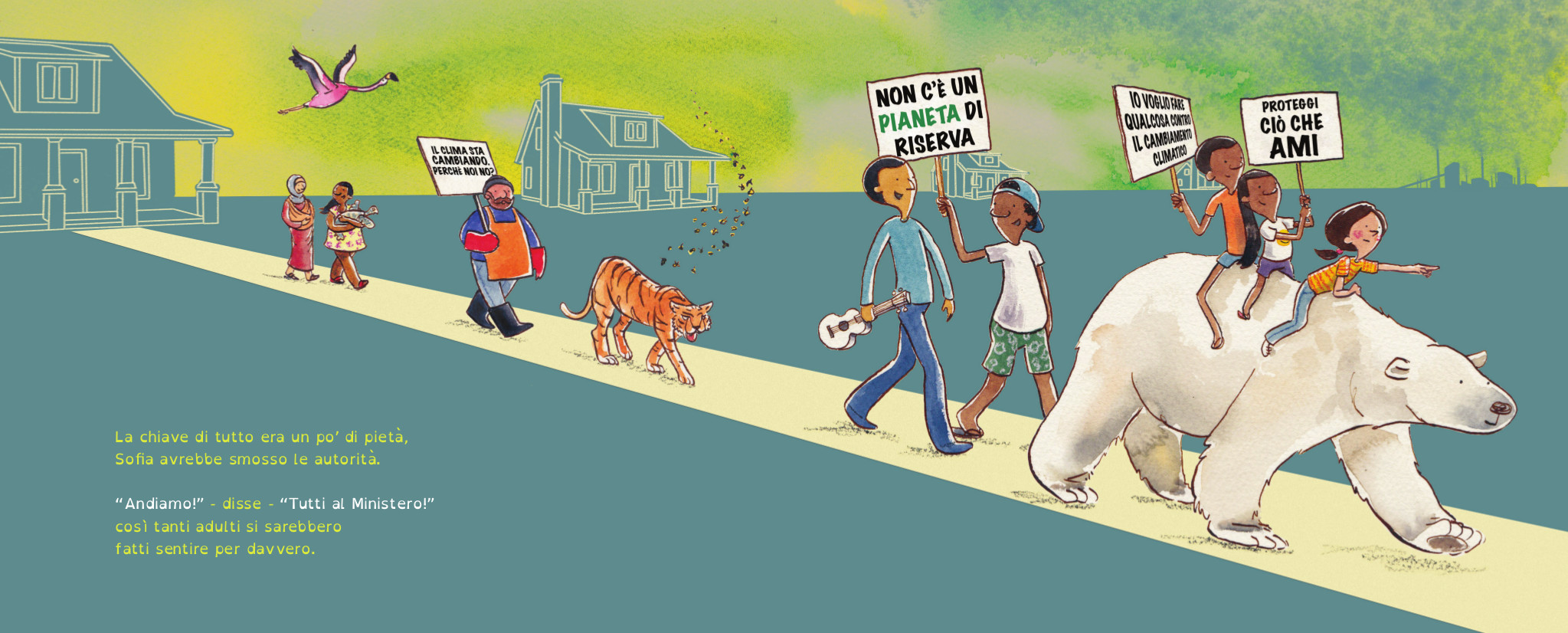 Come Greta Thunberg – la sedicenne attivista svedese nota in tutto il mondo per il suo impegno contro il cambiamento climatico – anche Sofia, la protagonista di questo libro, decide di impegnarsi in prima persona per sensibilizzare gli adulti sulle tragiche conseguenze del mutamento del clima.