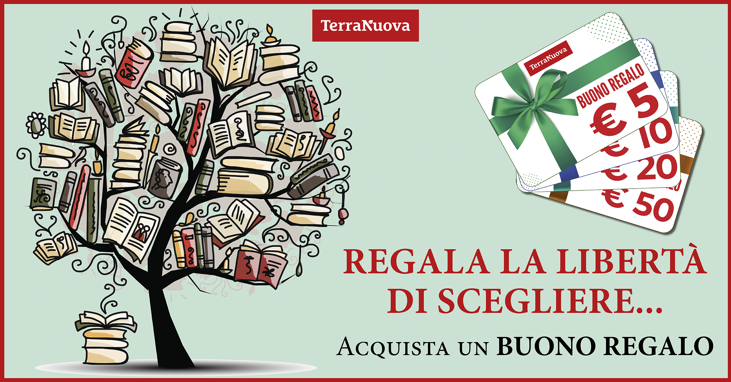 I BUONI REGALO DI TERRA NUOVASe stai cercando un dono speciale per amici o parenti, acquista un BUONO REGALO, e lascia a chi lo riceverà la libertà di scegliere quello che più gli piace tra i numerosi contenuti di Terra Nuova Edizioni.