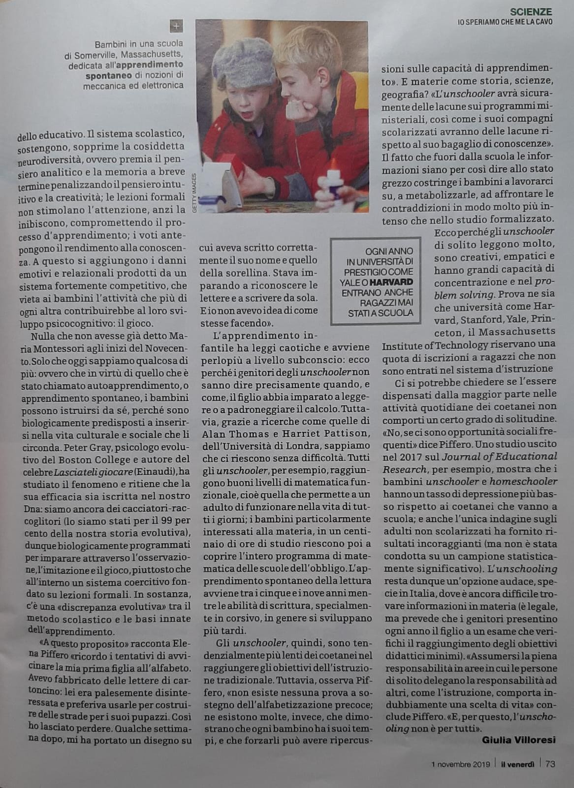 L'apprendimento spontaneo e la filosofia dell'unschooling