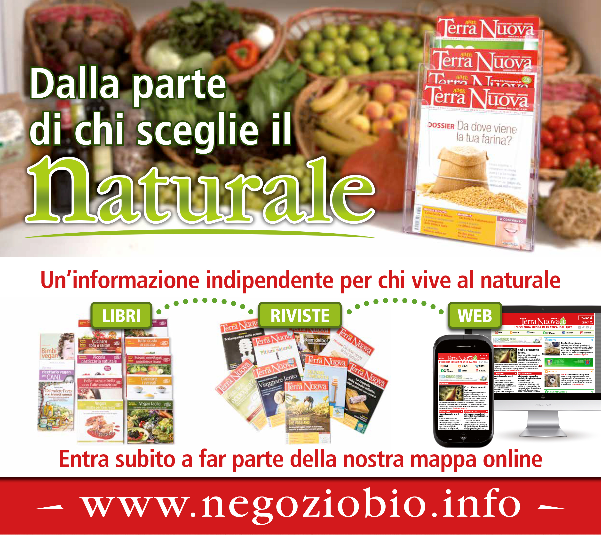 Oltre a essere segnalati sul sito con un'apposita scheda, a tutte le realtà che distribuiscono Terra Nuova è inviata gratuitamente la vetrofania "Il meglio del biologico": un'iniziativa che oltre a qualificare il negozio o il centro serve a segnalare la possibilità di acquistare in loco la rivista.